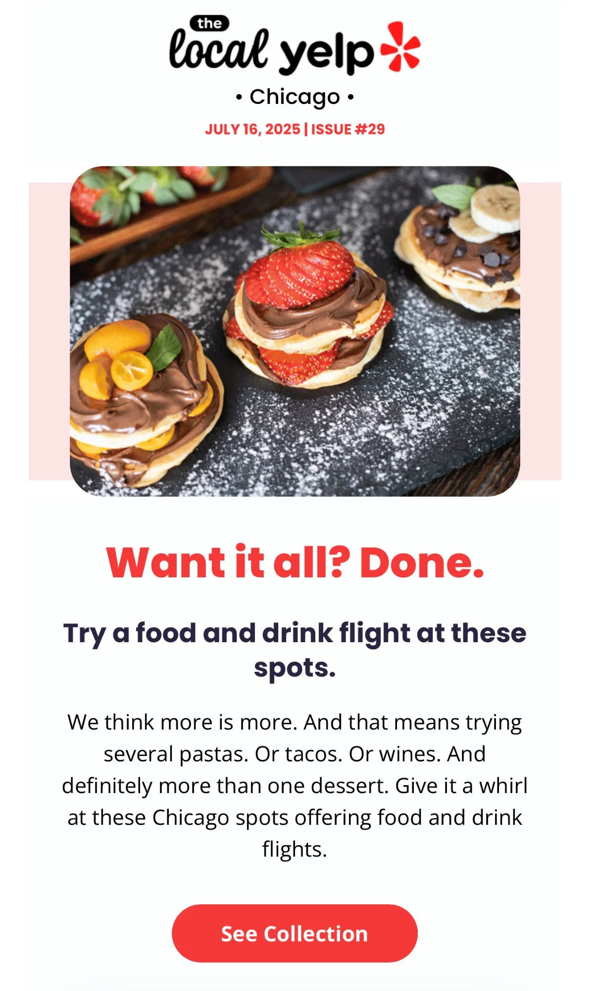 Social media content created during my time as a Community Intern for Yelp! SOCIAL MEDIA INSTAGRAM REELS LOCAL YELP COLLECTIONS INSTAGRAM FEED POSTS Writing →